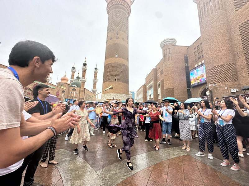十多天來,有太多精彩的瞬間和動人的故事在這裏上演,剛下飛機,來自南非的舞者們就學起了新疆舞;新疆藝術劇院的小果園裡,中泰藝術家共赴一場麥西來甫盛會;在昌吉,來自烏茲別克斯坦的藝術家們跳起了中國社火;土庫曼斯坦的演員們在烏魯木齊京劇院第一次接觸中國京劇……舞台上,在一次又一次的返場謝幕中,舞者們感受到新疆各族人民對文化藝術發自內心的熱愛,劇場外,各國藝術家來到新疆國際大巴扎、新疆博物館,感受風土人情、了解歷史文化,與新疆各族群眾共舞共樂。交流互鑒無處不在,來自五湖四海的人們,用舞蹈這一人類共同的語言,續寫着開放包容、交流互鑒的絲綢之路精神。