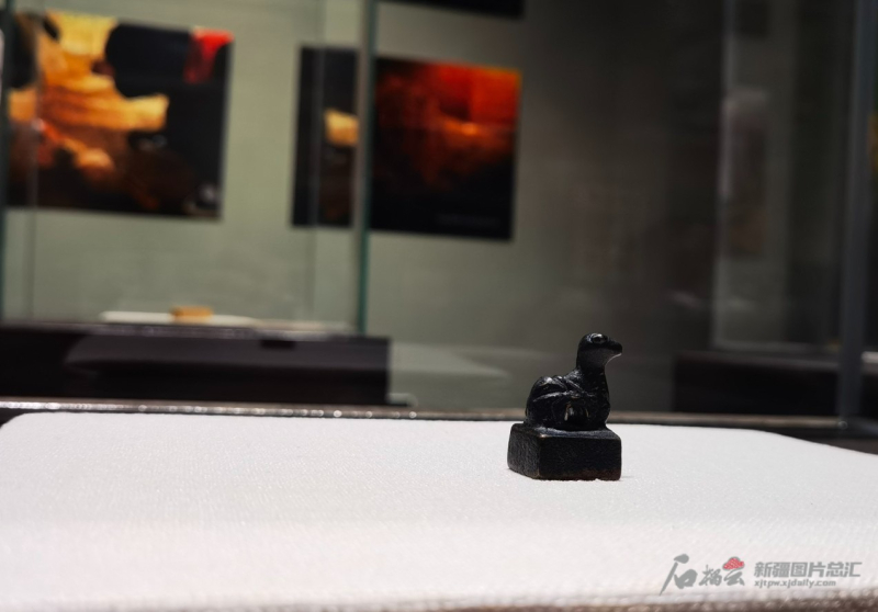 特展上,參觀者對一枚小小的印章產生了好奇,它的印面上刻着「漢歸義羌長」,出自阿克蘇地區烏什喀特古城,這枚漢代中央政權頒發給西域少數民族首領的印綬,是行使權力的象徵。