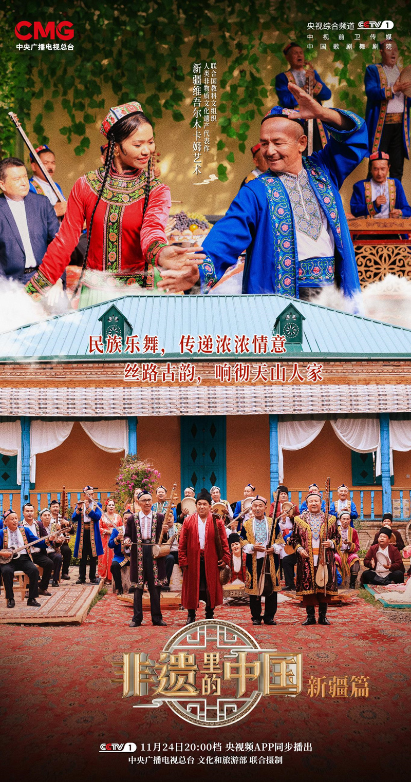 守正知所來,創新明所往。如何擔負好新時代新的文化使命,讓源遠流長的中華文明煥發時代光彩,非遺是重要切入口之一。由中央廣播電視總台與文化和旅遊部聯合攝製的大型文化節目《非遺裏的中國》再次起航,第一期我們將走進新疆,聚焦非遺在新時代天山南北煥發出的無限生機,展現非遺傳承與創新之美。節目將於11月24日2000檔於央視綜合頻道(CCTV-1)播出,央視頻全網獨家首播,為全國觀眾帶來一場精彩紛呈、底蘊深厚的新疆非遺盛宴!