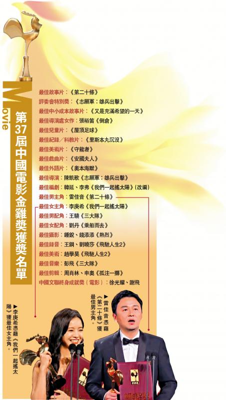 圖:張藝謀執導的《第二十條》獲第37屆金雞獎最佳故事片。