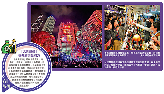 旅發局表示,全力吸引高增值過夜旅客訪港,鼓勵旅客延長留港時間及增加消費,吸引旅客一訪再訪。有智庫團體建議,未來的光影表演可融入不同傳統文化元素,打造成香港原創數字藝術IP,以數字藝術推動盛事經濟。\大公報記者 王亞毛
